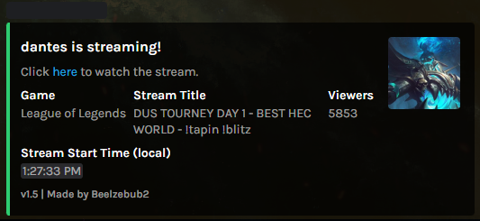 Get notifications of your favorite streamers on your discord Dm's