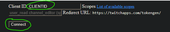 (OAuth redirect link must be "https://twitchapps.com/tokengen/")