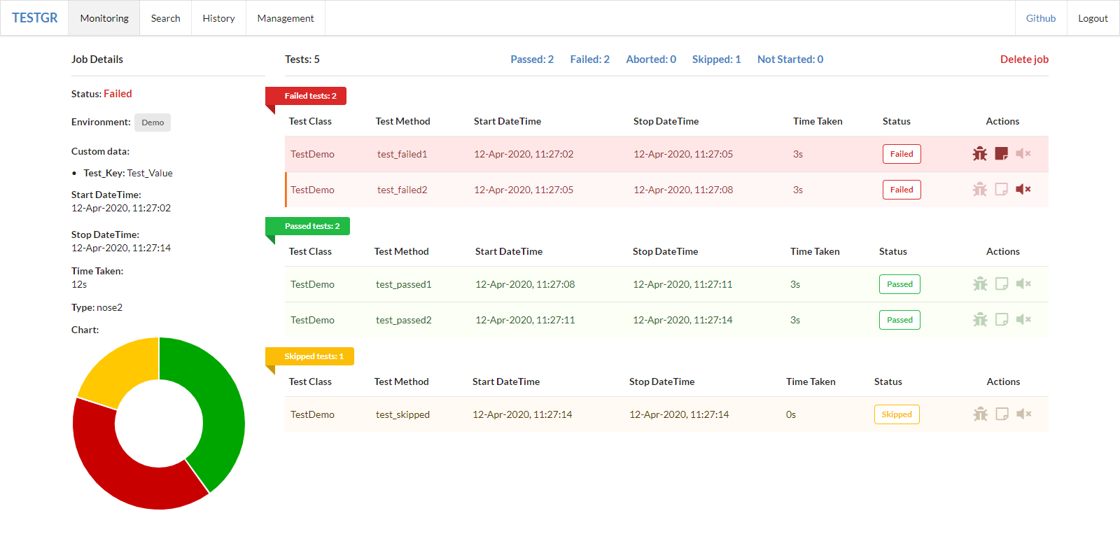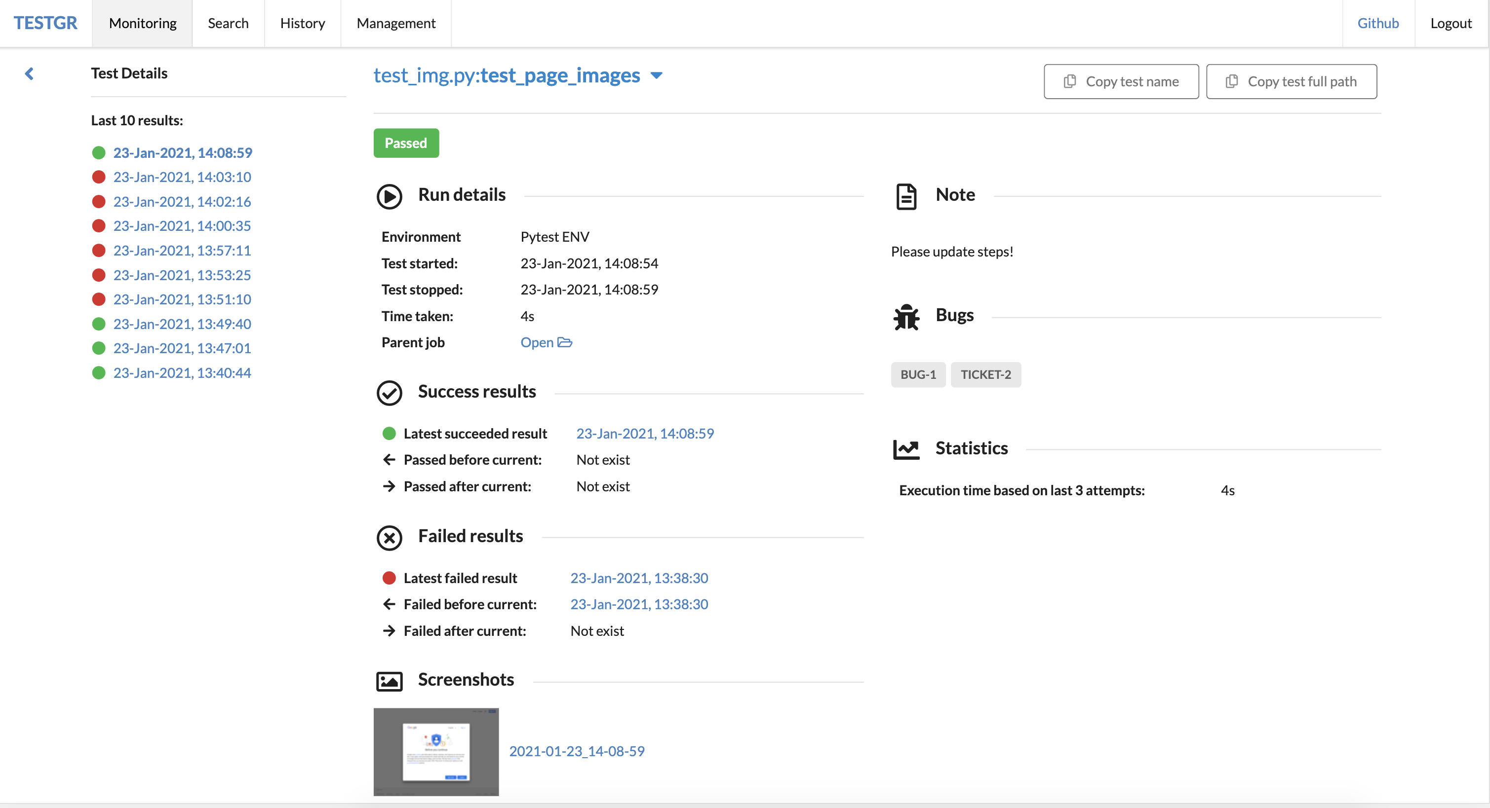 Web service which provides monitoring and data store for nose2 or pytest execution results.