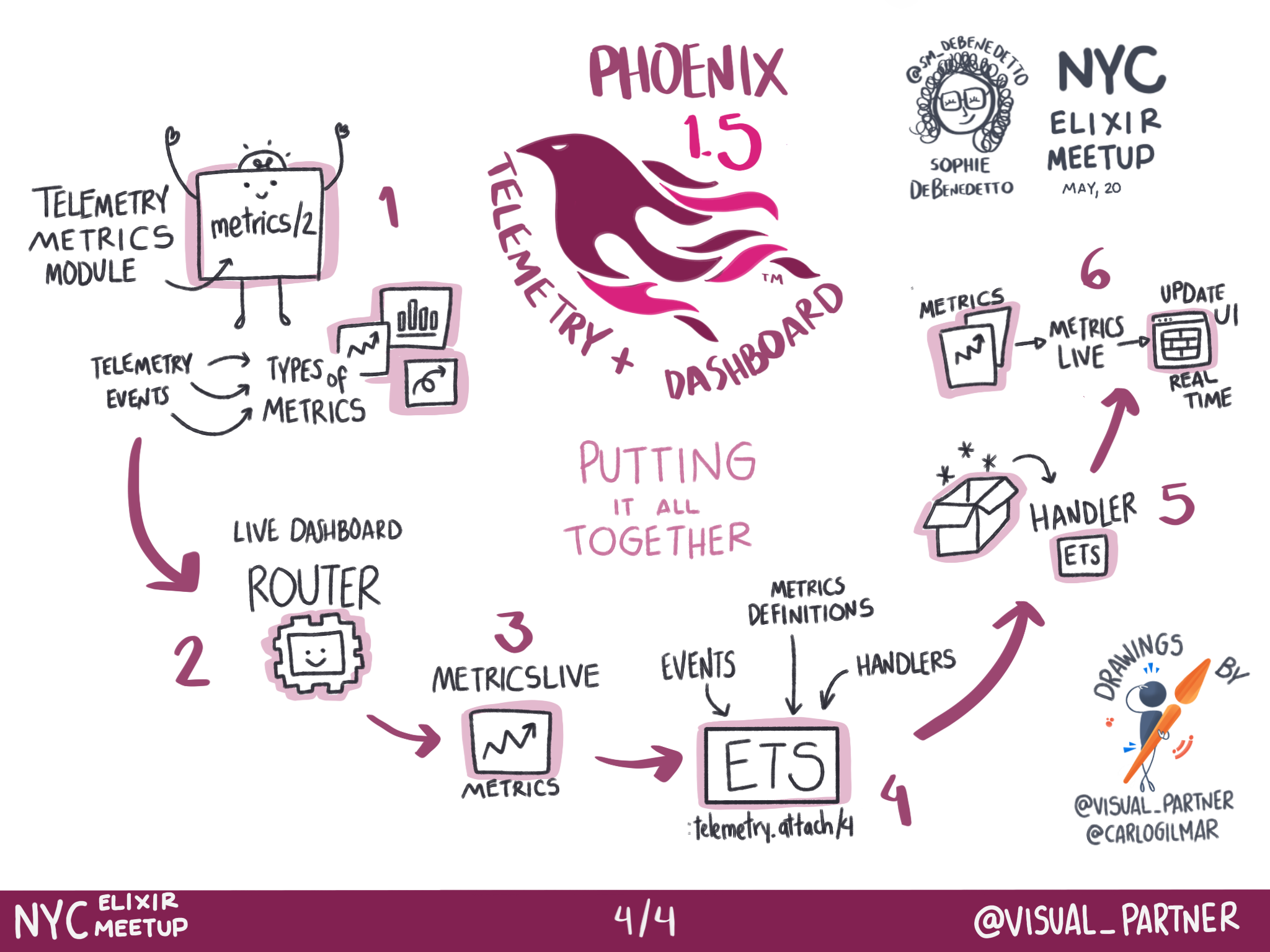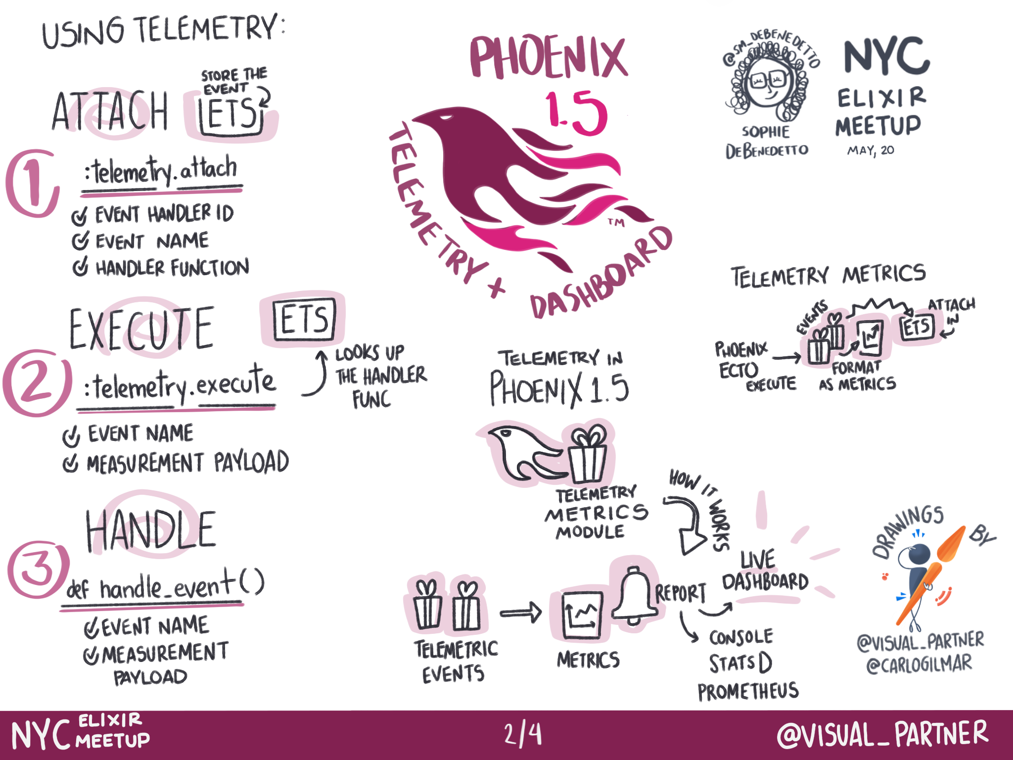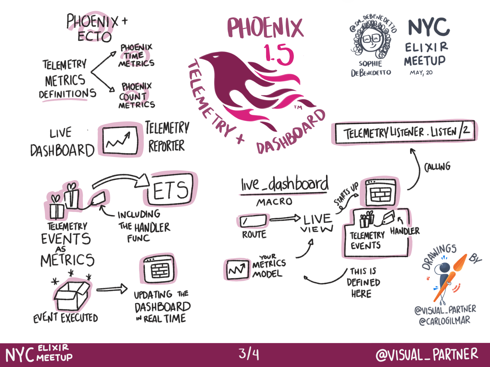 This are the graphic records of the talk about what's new in Phoenix Framework 1.5, about how Telemetry works and about the Live Dashboard implementation.