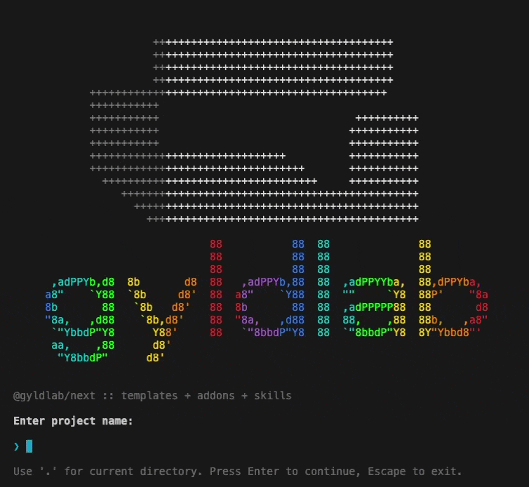 GYLDLAB_CLI_FONT="ANSI Shadow" bun dev -- my-appList templates: